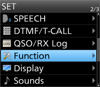 Hier leistet Icom eine hervorragende Arbeit und hat mit Einführung dieses Menüs und der Menü - Hirachie sowie der Beibehaltung über alle Funkgeräte einen echt bewundernswerten Beitrag geleistet. Wenn man sich Geräte anderer Hersteller wi z.B. Yaesu anschaut, die erfinden „das Rad“ bei jedem TRX neu und machen es nicht intuitiv und benutzen unverständliche Abkürzungen. Sicherlich beim VX1/3/5/6/7/8/FT-70D auch ähnlich, aber man braucht wirklich das Handbuch, um diese 4-stelligen Abkürzungen zu verstehen.
